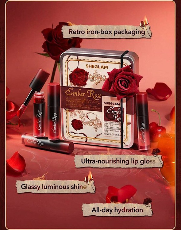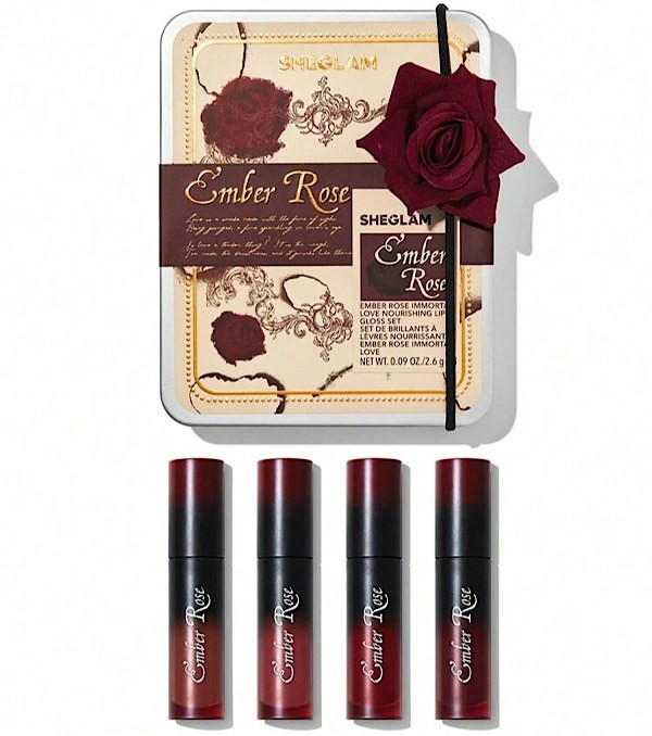 پک لیپ گلاس شیگلم SHEGLAM مدل Ember Rose Immortal Love دارای چهار رنگ لیپ گلاس فوق العاده زیبا با فرمول مغذی، جلوه ای درخشان و شیشه ای ارائه می دهد که روی لب ها رنگی زیبا خلق میکند. میتوانید از این محصول به تنهایی و یا به همراه یک رژلب مکمل استفاده کنید.
