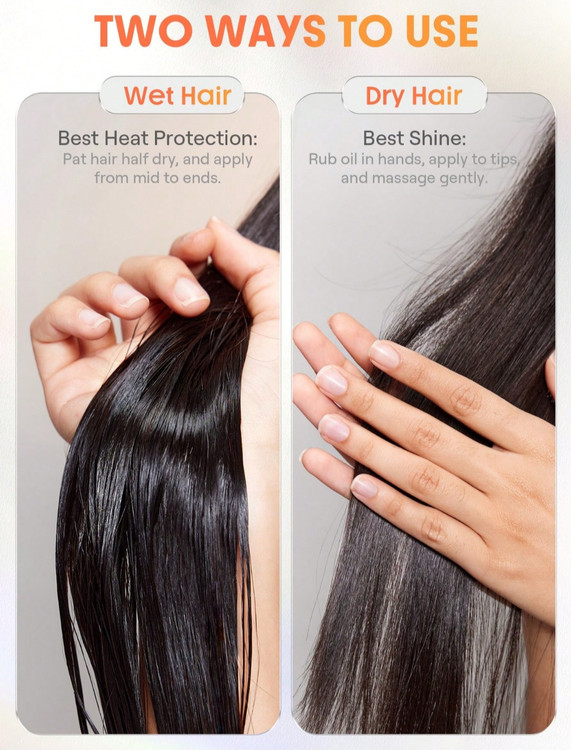 چند قطره از روغن را کف دست ریخته و روی موهای نمدار یا خشک، مخصوصاً قسمتهای آسیبدیده و انتهای مو، ماساژ دهید. برای محافظت بیشتر، قبل از استفاده از ابزارهای حرارتی به موها بزنید.