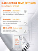 دارای ۳ درجه حرارت و سرعت به همراه گزینه هوای خنک است که طیف متنوعی از حالتدهی و نتایج عالی را برای همه نوع مو فراهم میکند. این دستگاه میتواند زمان سشوار کشیدن در سالن را به نصف کاهش دهد؛ نه تنها سرعت خشککردن را افزایش میدهد، بلکه جلوهای حرفهای و بینقص مثل سالن زیبایی به موها میبخشد.