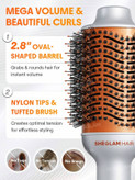 برس سشوار ما از سوزنهای نایلونی و پرزهای نرم استفاده میکند که بهطور مؤثر از گره خوردن مو جلوگیری کرده و نرمی، حجم و درخشندگی را بهبود میبخشد. طراحی خاص استوانه بیضی شکل برس، حجم مو را بیشتر کرده و سرعت حالتدهی را افزایش میدهد. این برس با پوشش GLOSS PRO™ ساخته شده که مو را در برابر حرارت محافظت میکند و همزمان درخشندگی ایجاد کرده و رطوبت را حفظ میکند تا موها براق و بدون وز باشند.