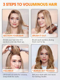 3. حجمدهی: برس را در قسمت ریشهها بلند کنید تا حجم بگیرد و انتهای موها را برای حالتدهی و فر شدن بپیچید.